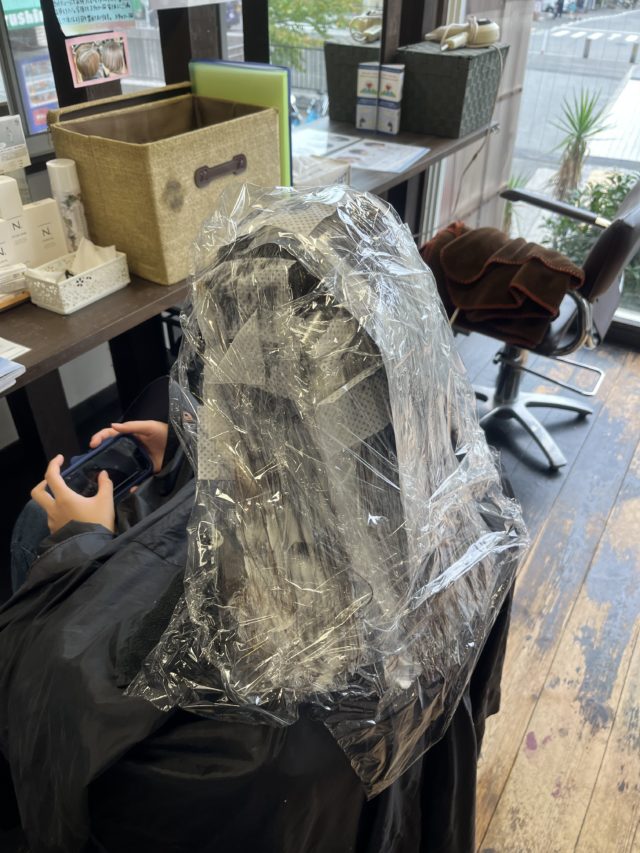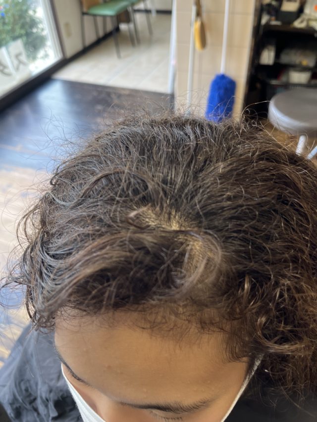 癖毛でむちゃくちゃ悩んでいらっしゃって、カラーもされるので、切れ毛がひどかったけど。うちの店ではなんのその。さぁやっちゃうよ。